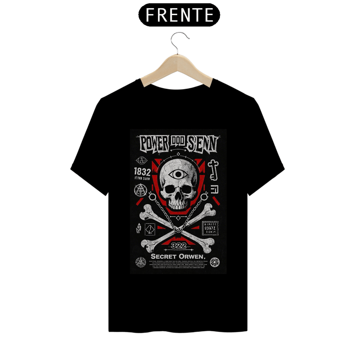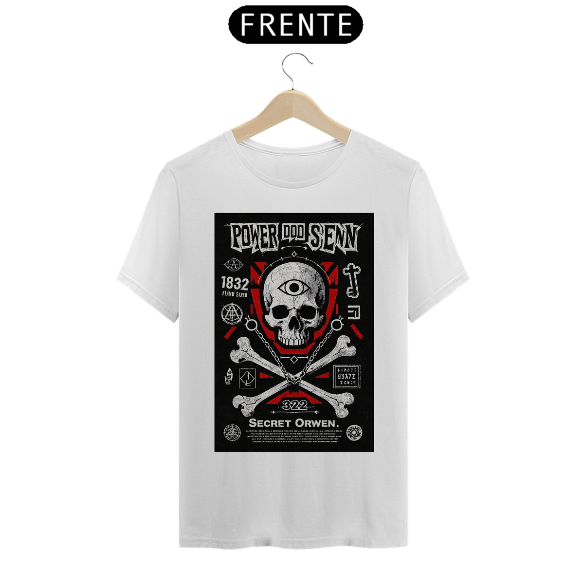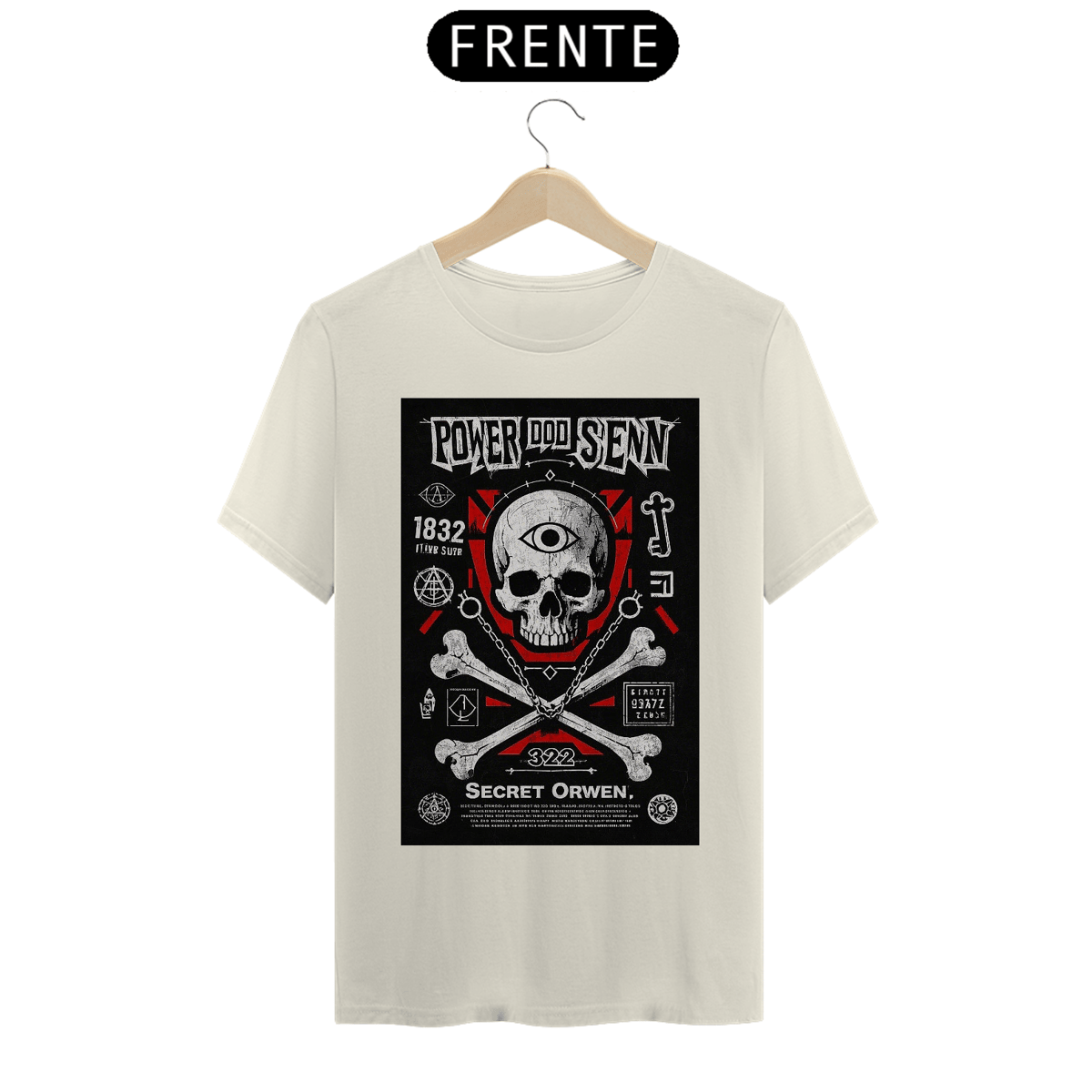 Nossa camiseta "Skull and Bones" vai além do óbvio. Cada detalhe da estampa foi cuidadosamente projetado para transmitir mensagens ocultas e códigos criptografados, inspirados nas tradições secretas da sociedade. Aqui estão alguns elementos que você encontrará: